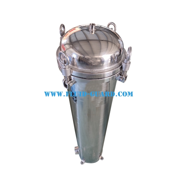 Bag filter housing is an ideal housing for most demanding applications, easy filter bag change-outs, excellent sealing performance. Top inlet filter housing has a top inlet and bottom outlet, through which the fluid to be filtered flows from top to bottom during the filtration.When the head cover is closed, it directly compresses the sealing ring of the