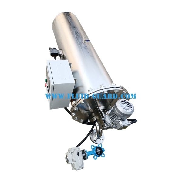 The suction self-cleaning filter is cleaned by a motor-driven suction nozzle and can be used under low-pressure pipelines. The filtering level is high. The control method adopts timing and pressure difference control. It adopts horizontal installation and is easy to maintain. The suction nozzle cleaning method does not damage the filter screen, and the filter screen has a long service life.