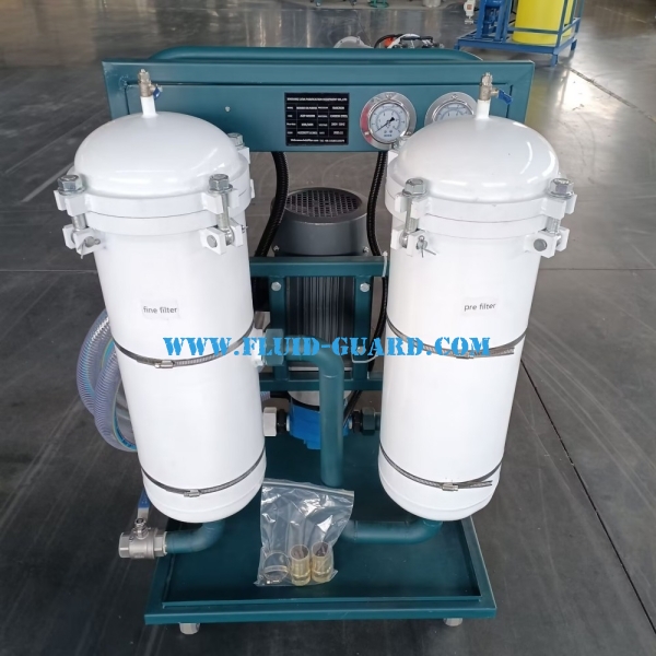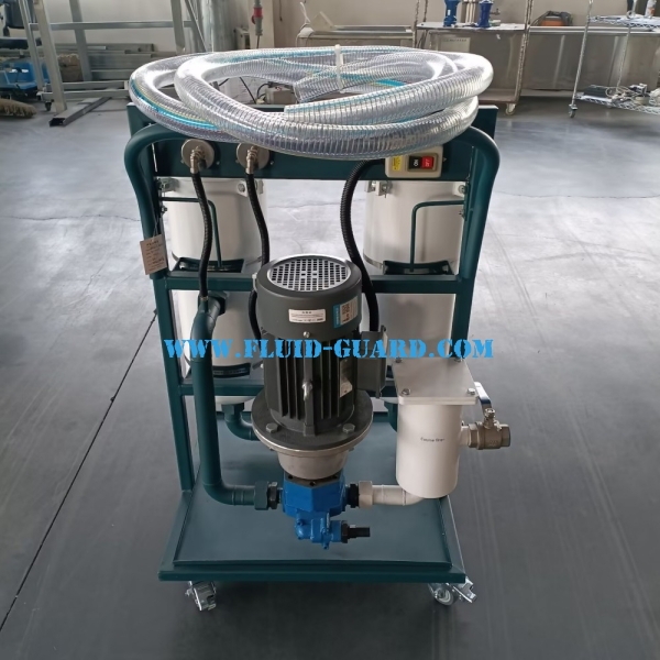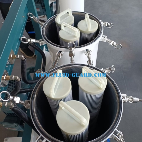 This filter cart is equipped with 2 filter housings and contains 3 filter stage: Coarse filter, 1st stage fine filter, 2nd stage fine filter, so it’s much more efficient compared to normal filter cart, which is equipped with only 1 filter housing and therefore contains only 2 filter stage.